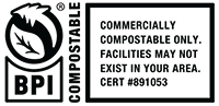 The BPl logo means that our bags as industrially compostable. meeting ASTM D6400 standards and does not leave harmful residues behind.